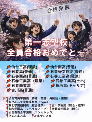石巻市・東松島市・豊里町・女川町・仙台市で、小学生・中学生・高校生のお子様をお持ちの保護者様へ。